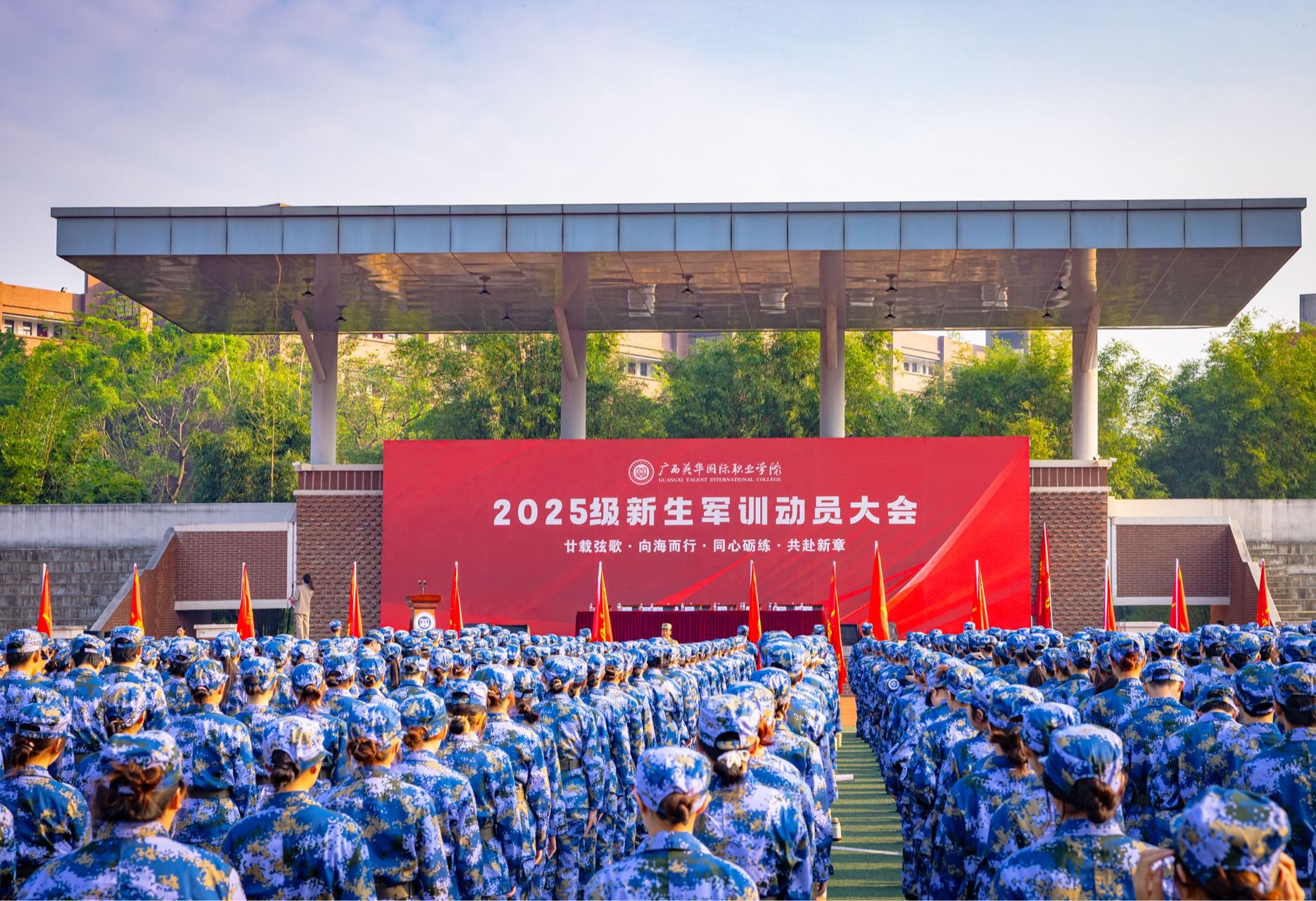 向海圖強(qiáng)礪青春,迷彩鑄魂擔(dān)使命——廣西英華國(guó)際職業(yè)學(xué)院2025級(jí)新生軍訓(xùn)動(dòng)員大會(huì)隆重舉行
