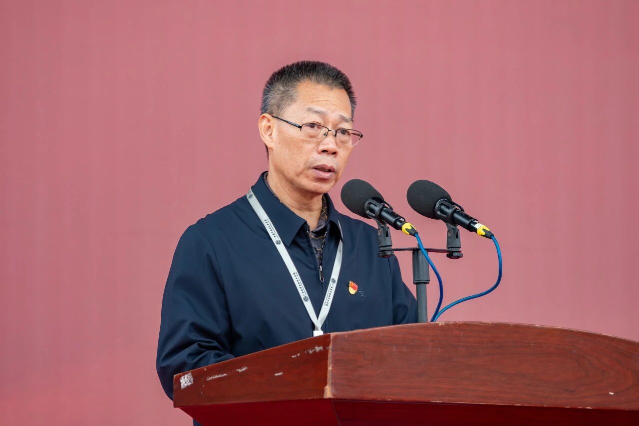 ▲廣西英華國際職業(yè)學(xué)院黨委書記黃家良講話