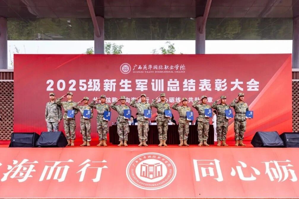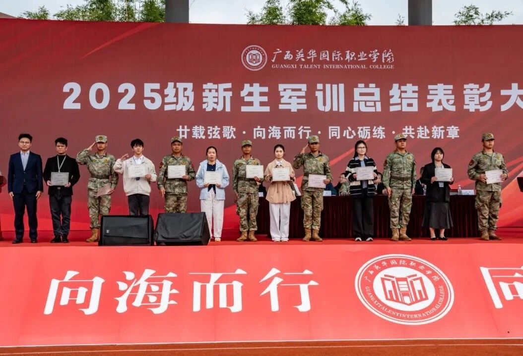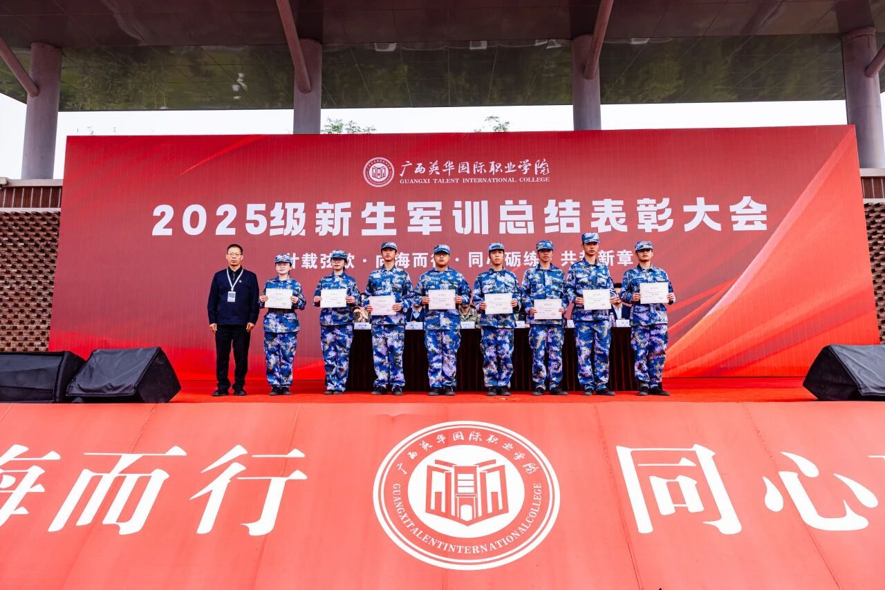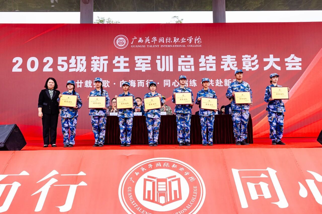 ▲廣西英華國際職業(yè)學(xué)院2025年軍訓(xùn)標(biāo)兵