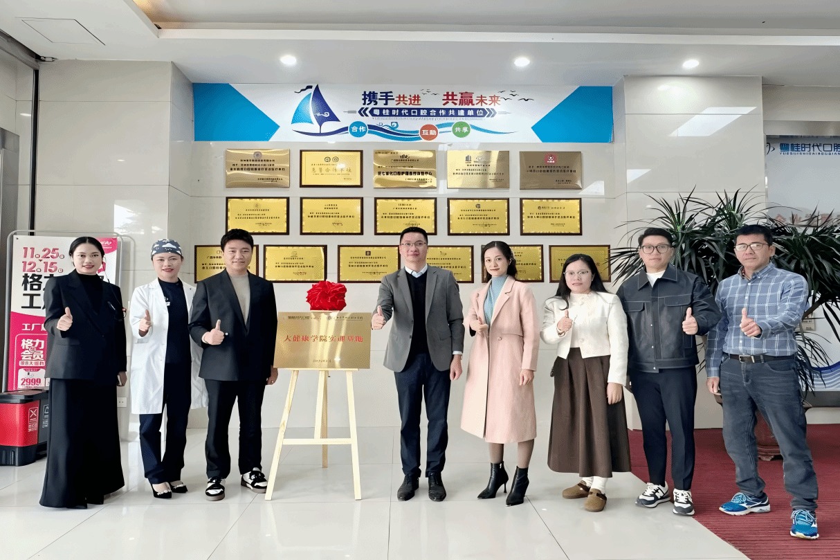 ▲學(xué)校大健康學(xué)院與粵桂時(shí)代口腔雙方代表合影