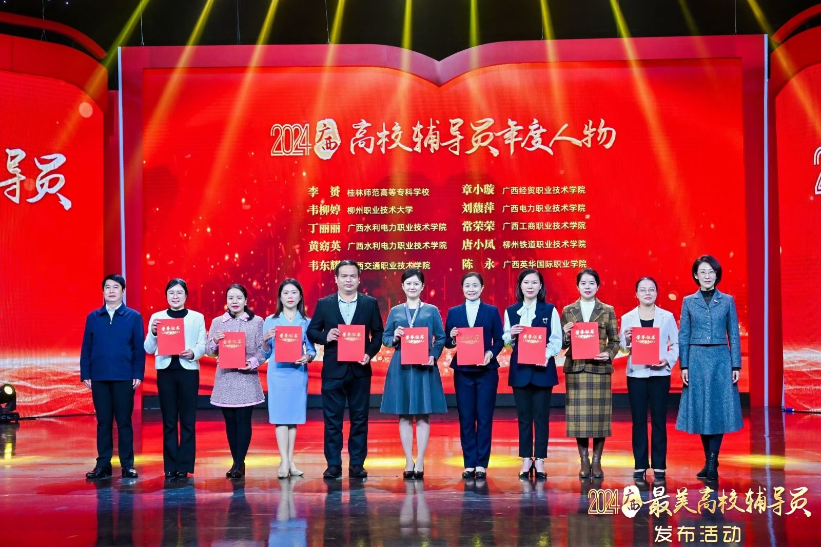 ▲廣西英華國際職業(yè)學院輔導員陳永老師榮獲2024年廣西“高校輔導員年度人物”,在活動現(xiàn)場接受表彰。