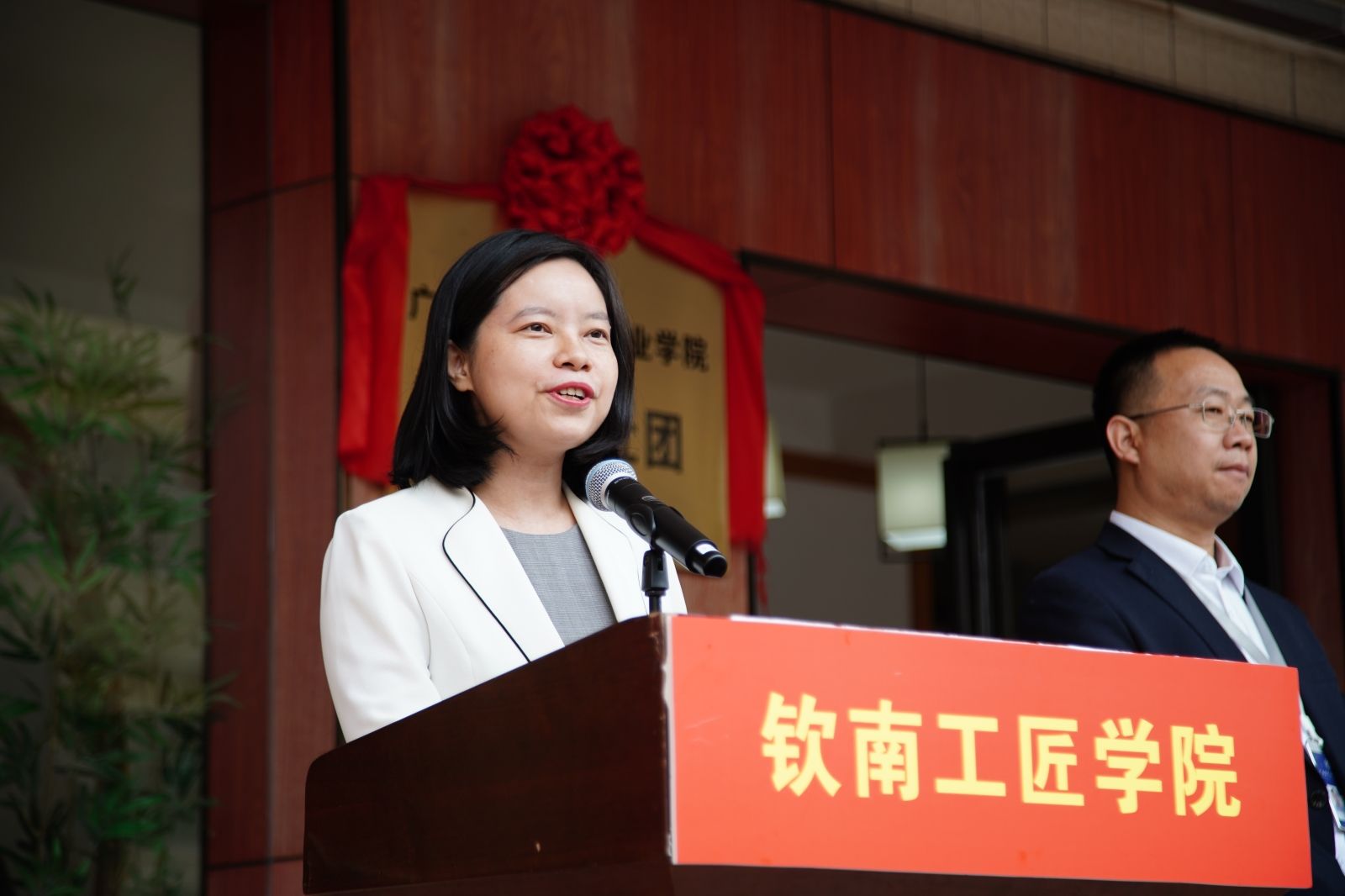 宋博對(duì)與會(huì)領(lǐng)導(dǎo)和來賓表示熱烈歡迎和衷心的感謝,對(duì)欽南工匠學(xué)院揭牌表示熱烈祝賀!他表示,欽南工匠學(xué)院的成立是進(jìn)一步發(fā)揮勞模工匠示范引領(lǐng)帶動(dòng)作用,讓更多工匠和勞動(dòng)模范參與人才培養(yǎng)的有效途徑,對(duì)推動(dòng)產(chǎn)教融合發(fā)展,提升高技能人才能力水平,培養(yǎng)更高素質(zhì)職業(yè)技能人才、能工巧匠、大國(guó)工匠具有重要意義。