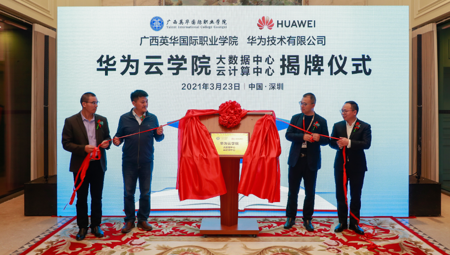 2021年3月23日,廣西英華國際職業(yè)學(xué)院與華為在華為總部隆重舉行共建華為云學(xué)院(大數(shù)據(jù)中心、云計(jì)算中心)揭牌儀式,以共同推動(dòng)深化產(chǎn)教融合,共筑信息與通信技術(shù)(ICT)人才生態(tài)。