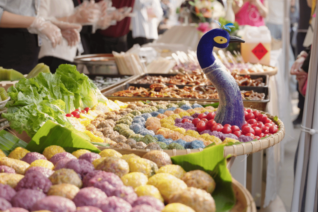 “民族美食街”更是人氣爆棚,被圍得水泄不通。五色糯米飯色澤鮮艷,寓意著吉祥如意;酸甜可口的酸嘢,讓人垂涎欲滴;軟糯的青團,散發(fā)著艾草的清香。師生們穿梭在美食攤位之間,盡情品嘗地道的廣西風(fēng)味,感受舌尖上的民族風(fēng)情。
