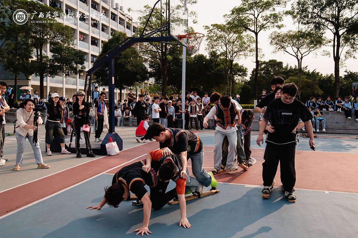 緊接著,街舞社帶來的“壯族街舞快閃”,將傳統(tǒng)與現(xiàn)代完美融合。舞者們身著帶有壯族特色圖案的服飾,伴隨著動感的音樂,將壯族舞蹈的獨特韻味融入到街舞動作中,剛勁有力又不失民族風(fēng)情,引得現(xiàn)場觀眾掌聲、歡呼聲此起彼伏。