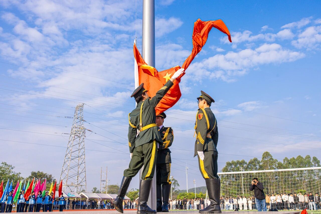 開幕式伊始,莊嚴(yán)的升旗儀式如期舉行。國歌嘹亮,紅旗飄揚(yáng),全場師生肅立注目,目光追隨著緩緩升起的五星紅旗,赤子之心與愛國情懷在此刻交融,凝聚成英華學(xué)子奮進(jìn)向上的青春力量,為整場運(yùn)動會奠定了莊重而激昂的基調(diào)。