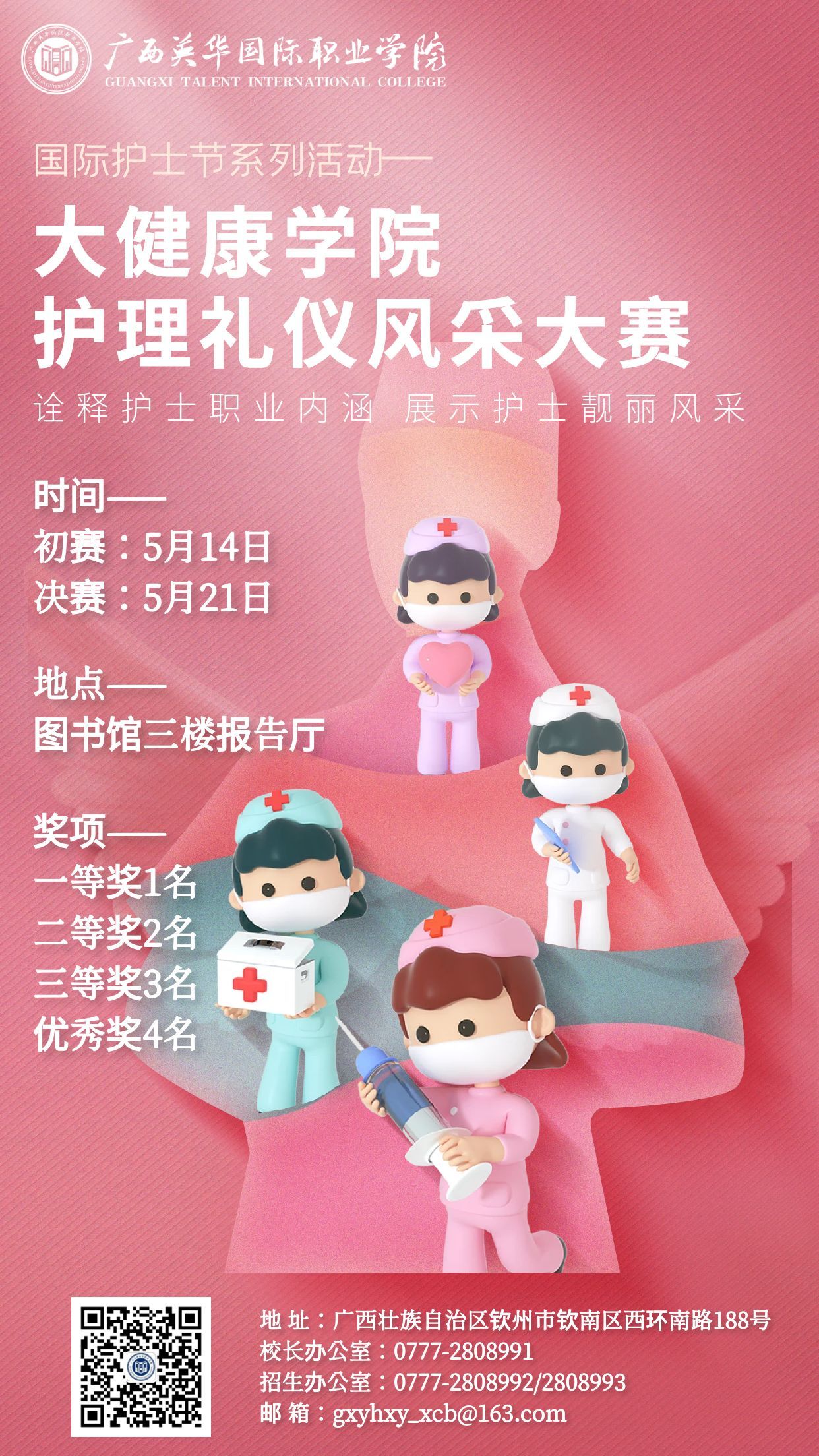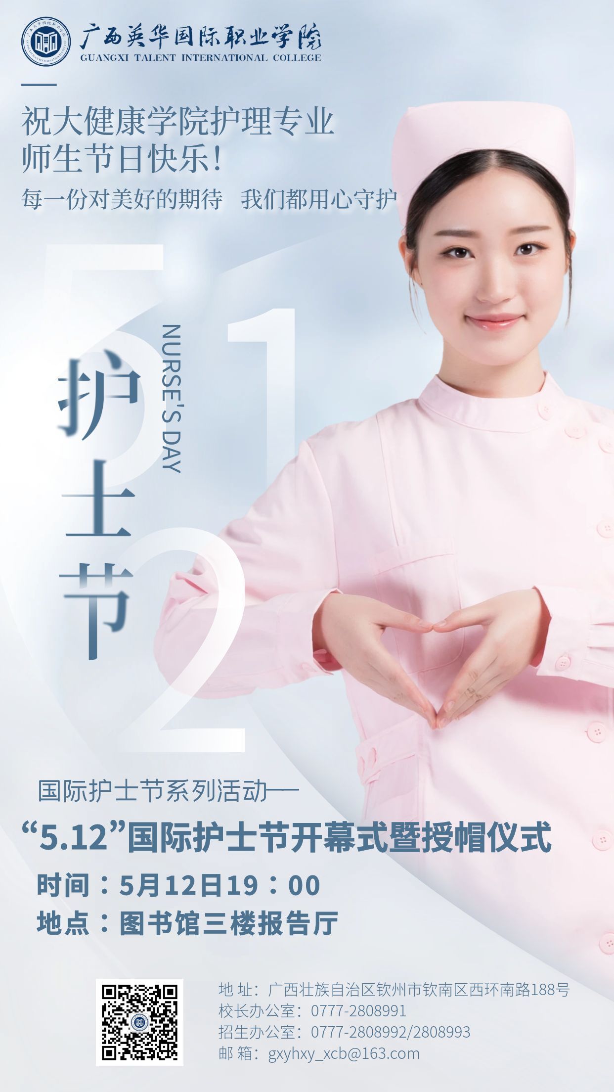 “5.12”國際護士節(jié)到來之際,為弘揚南丁格爾精神,傳承和發(fā)揚中華民族優(yōu)秀的傳統(tǒng)禮儀道德文化,展現(xiàn)青春風(fēng)采,樹立良好形象,提高當(dāng)代大學(xué)生綜合素質(zhì),豐富校園文化生活,廣西英華國際職業(yè)學(xué)院通過開展大健康學(xué)院學(xué)生授帽儀式、護理禮儀風(fēng)采大賽、“愛心送溫暖,健康進社區(qū)”義診等系列活動,以實際行動體現(xiàn)白衣天使大愛無私的精神,彰顯護士工作的崇高職業(yè)使命。