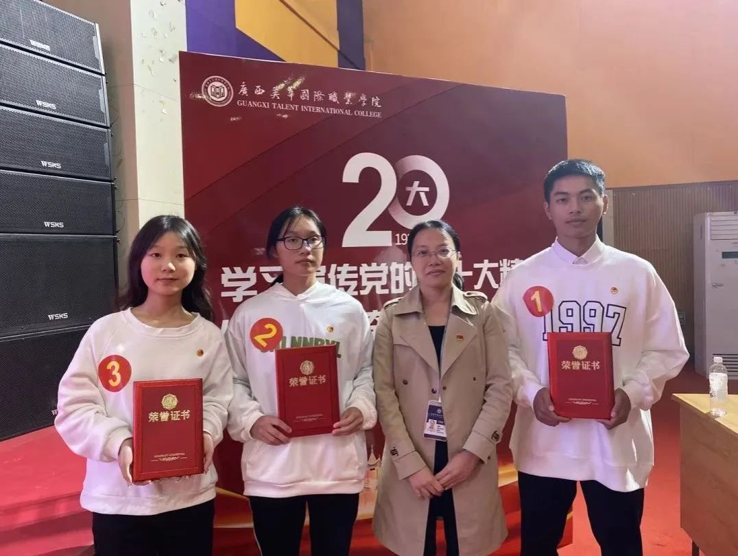 陳永同志在大學(xué)求學(xué)期間,就作為優(yōu)秀學(xué)生代表率先于2004年7月加入了中國共產(chǎn)黨。入黨后,她始終保持“一個優(yōu)秀黨員該有的樣子”。黨的二十大以來,她模范擔(dān)當(dāng)“為黨育人、為國育才”的初心使命,堅持每周學(xué)習(xí)習(xí)近平新時代中國特色社會主義思想,認(rèn)真撰寫了3萬余字的讀書筆記、觀看30余場專題紀(jì)錄片。她以黨的二十大精神凝心鑄魂,在工作中認(rèn)真貫徹執(zhí)行,取得優(yōu)異成績:2022年7月被評為學(xué)校“優(yōu)秀共產(chǎn)黨員”;2023年7月被中共欽州市委教育工委評為“優(yōu)秀共產(chǎn)黨員”。