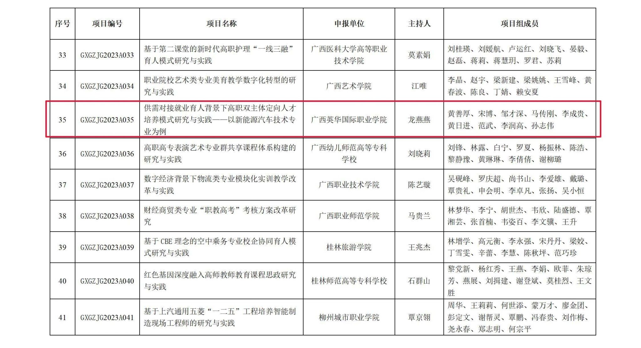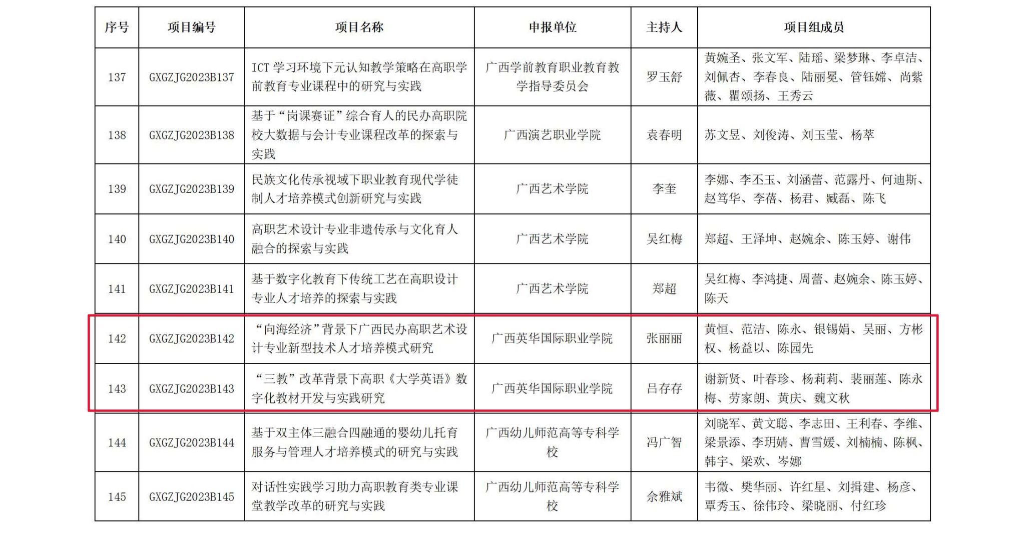 近日,廣西壯族自治區(qū)教育廳公布了2023年度廣西職業(yè)教育教學(xué)改革研究項(xiàng)目的立項(xiàng)名單。我校提交的5個(gè)課題中有3個(gè)成功獲批立項(xiàng)。其中,龍燕燕老師提交的課題被評為重點(diǎn)課題,為我校的職業(yè)教育教學(xué)改革注入了新的活力。