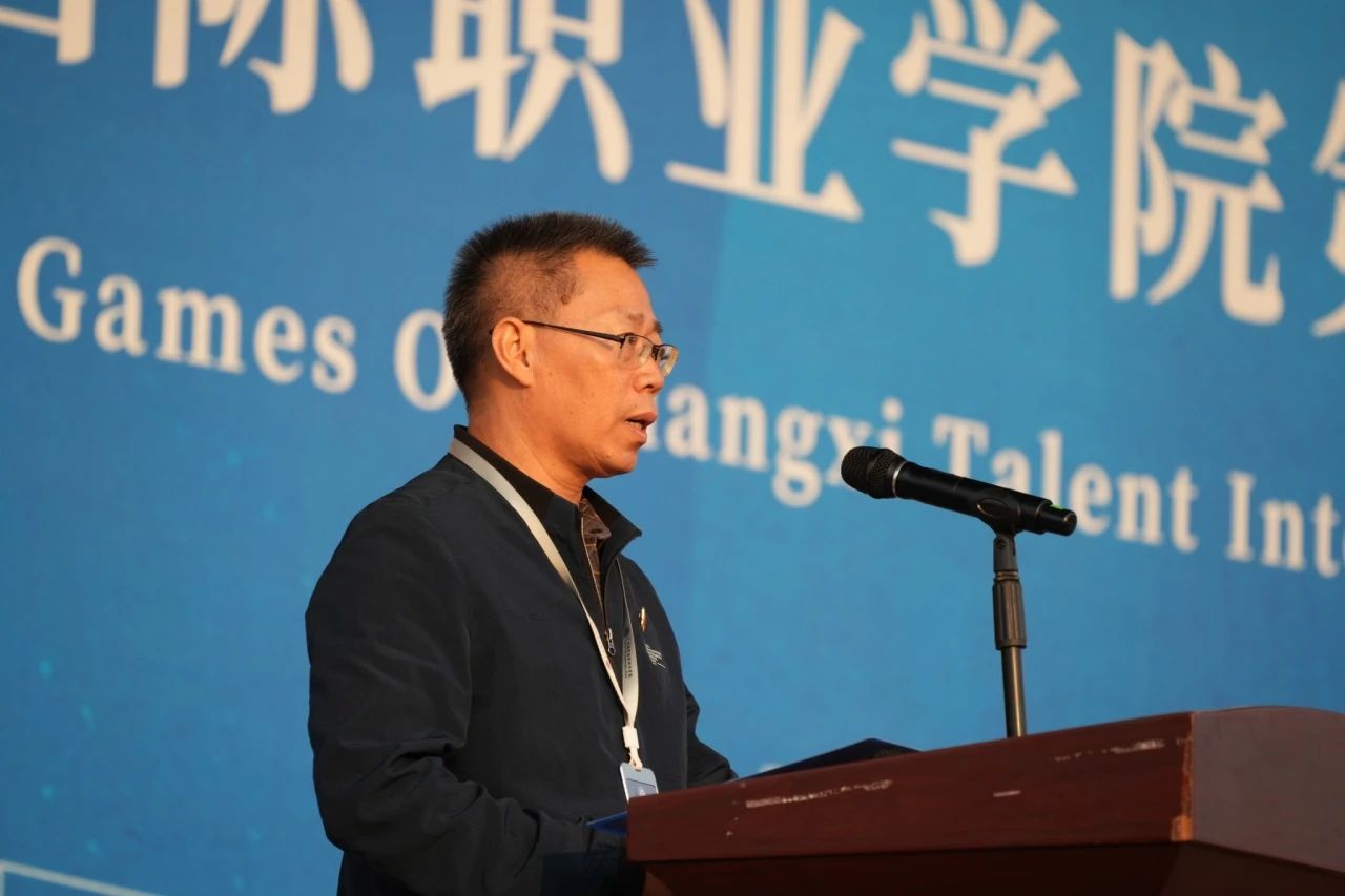 ▲廣西英華國際職業(yè)學(xué)院黨委書記黃家良講話